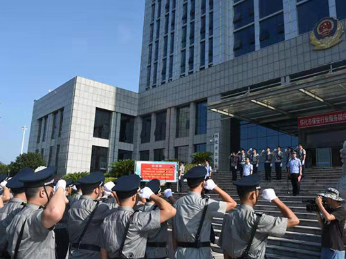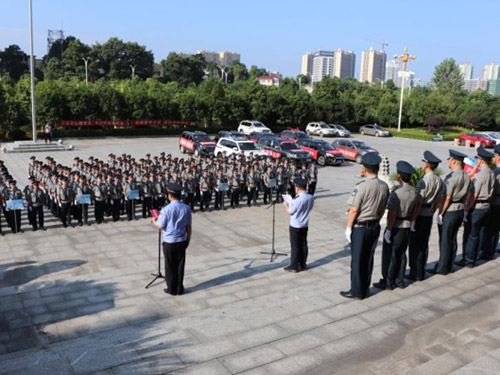 2019年7月24日,懷化市保安主題宣傳日活動暨保安行業(yè)服務(wù)國慶安保工作誓師儀式在市公安局舉行。踐行新使命 忠誠保大慶